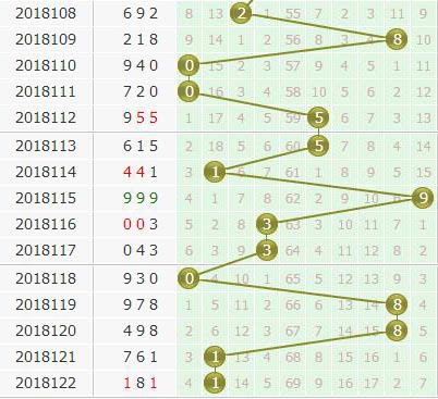 上期开奖号码为181,在个位上开出1号,从近期个位表现来看,由于走势上振幅的大起大落还在持续,上期依照之前的走势规律再度出现了一个2期连开号码,结合之前连开之后号码走向看,本期移动振幅点数在4点和3点的可能性最大,关注落点在4号和5号上面,另外在这几期里最突出的就是0号球的回补表现,本期0号建议继续关注一下;鉴于之前几期振幅都是比较大,本期在缩小的范围内再看好一个6号球。