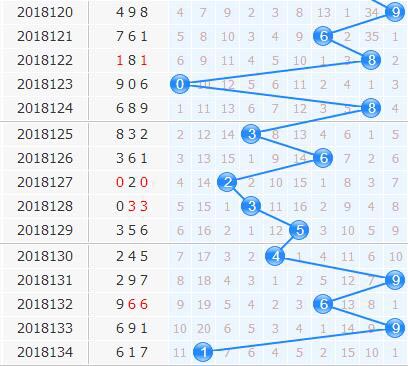 十位上期开出1号球,从十位走势来分析,近期十位上号码回补的现象比较频繁,并且走势振幅和之前的5期相比明显拉大了很多,局势更加的不稳定了,本期1号球建议杀掉;上期大振幅8点开出,预计本期振幅会有所收敛,建议杀掉9号球,8号球在隔期出号之后开始了长时间的遗漏,本期不看好8号开出。