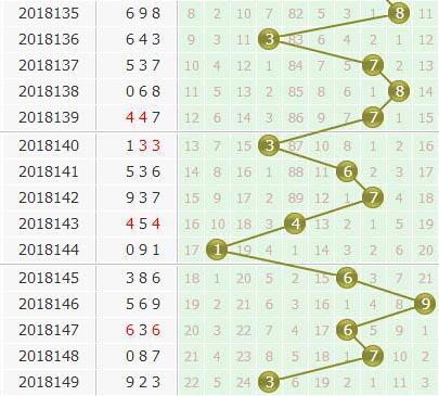 个位上期开出质数3号球,从个位的走势图上看,质数在歇息了3期之后再度连开出现,符合它一贯的作风,并且由于这几期的休息有望突破出新的出号几率,本期继续看好质数开出;目前个位上不管冷号热号以单期出号为准,大热号基本频繁回补,没有重复出号的现象,因此可以排除3号球。