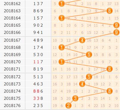 百位开出了偶数2号球,从百位走势上来看,目前走势上虽然奇数占据着优势,大部分连开发挥号码来自于奇数的表现,也因为奇数的过度表现,近期已经无法支撑爆发性的连开走势了,目前偶数抓住机会密集反攻,本期继续看好偶数;目前走势上8号球在近期出现了两次回补,号码出号频率较大,而上两期的开出重点转移去了冷码上面,本期斟酌了一下8号的走势间隔,本期建议排除8号。