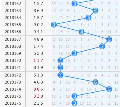十位上期开出了号码3,从十位走势上来看,1号球近期在遗漏了18期之后爆发出了3期的连续出号表现,之后开始休息起来,准备恢复元气,而目前4期的间隔还不足以让1号再度回补;8号球近期出号间隔偏大,两次开出分别间隔了11期和6期,本期想要开出是比较困难的;而9号明显已经被走势遗漏了起来,并且还没超过它上一次的遗漏期数,本期看淡9号。