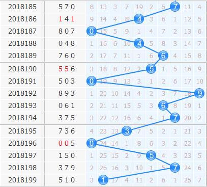 十位上期开出了1号球,从十位走势来看,近期十位上号码基本呈现单期出号的形态,普遍没有热度过高的号码出现,上期奖号1号球在遗漏26期的情况下开出,不存在迅速走热的能力,本期不看好1号开出;在1号邻码的2号球由于是振幅1点的位置,和近期出号振幅不符合,因此可杀掉2号;而5号球在逐次的回补中间隔期逐渐更加,本期不看好5号回补。