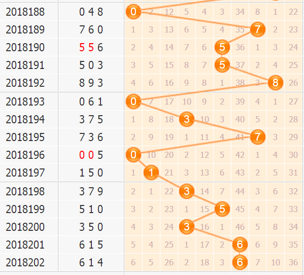 百位上期开出号码6,6号球在百位重复开出,这次遗漏46期开出之后又连续出号,结合近期的百位走势分析,本期应该是不会出现的,所以推荐大家首杀一码:6。近期的百位走势跨度也是一直保持着小跨度号码走势,本期应该会继续保持,金手指本期建议大家不太看好中大跨度号码开出,具体推荐百位杀号:016