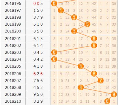 百位开出大数8号球,从百位走势上看,小数这几期出号积极性明显大于大数,不断的连开3期形态出现,导致近期大数的出号偏向于零散,不是那么的集中,小数走势上隔期出号能力也比较强,本期看好小数开出;位于中间位置的4号在近期回补过一次,但是由于这几期偏向冷码开出,建议排除4号。