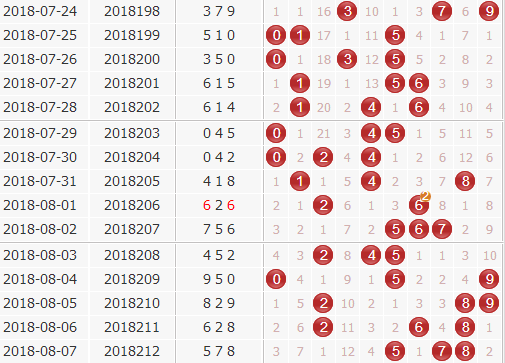 分析近期的综合走势,上期开出的是578,组六形态,大大大,奇奇偶。从综合走势图上看,1号和3号是近期的两个冷码,3号遗漏情况更为严重一些,不过已经和近期最大的遗漏值相等同了,所以可以注意一下,1号球已经突破了自己的最大遗漏,随时后爆冷的可能;2号球这几期频繁隔期出号,本期要注意2号的隔期攻势;5号球是上期奖号,近期5号出号胸闷,连开能力强大,本期看好5号开出。