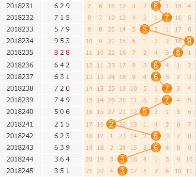 百位开出了奇数3号球,从百位走势上看,百位上奇数几次出号都为连续出击,只是近期连续出号的中间阶段,遗漏间隔期有所增大,偶数上面在前几期刚结束了3期连开,目前还在恢复实力当中,暂时不会出号,本期继续看好奇数开出;9号球遗漏期较长,而且在上一次遗漏6期出号之后义无反顾转为冷号,本期9号可以排除。