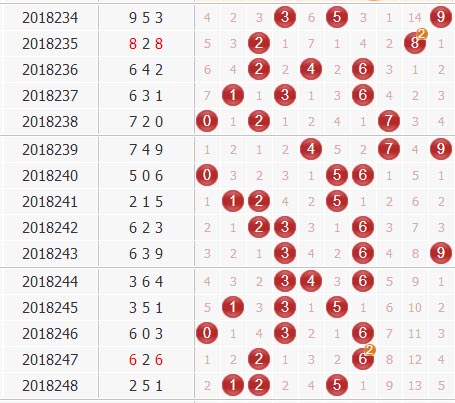 分析近期的综合走势,上期开出的是251,组六形态,小大小,偶奇奇。从综合走势图上看,目前斜连号是一个出号的重头戏,优先考虑斜连号的出号落点,4号球正好和上两期奖号5和6组成一组斜连号,本期4号关注一下,同时顺着上期斜连号的落点下来,本期到了0号位置,建议盯防0号;热号上6号还在源源不断出号,本期看6号隔期表现;同时注意6号隔壁的7号球的爆冷情况。