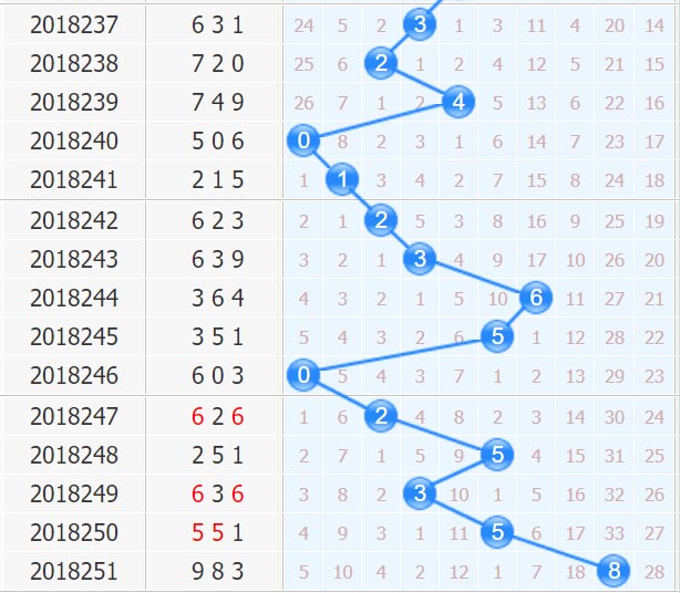 十位上期开出号码8,8号球在十位间隔了33期开出,算是这下解决了一下十位的一个大冷号,目前十位连续开出两期大号,整体出号位置保持小幅度右移,本期预计十位中大号还是会依旧开出。本期太阳风根据号码走势分析,不大看好中小号出号,根据十位杀号公式分析,上期跨度加和尾之和取个位之和杀本期十位一码:6+0=6,本期十位重点推荐杀一码:0