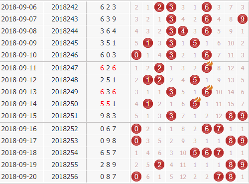 分析近期的综合走势,上期开出的是087,组六形态,小大大,偶偶奇。从综合走势图上看,近期连码开出频繁,号码之间似乎有特殊的磁场相连,经过上期的两个邻码开出,以及8号球的重复出号表现,本期看好6号和7号相连出号,加上隔期号的活跃表现,本期防9号继续隔期开出,0号球在连开之后回补比较积极,近期有走热的趋势,本期继续看好0号。