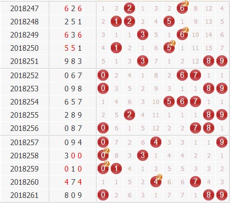 上期开奖号为809,大小大、偶偶奇,组六形态。结合综合走势图分析,0号球近期多次有重复出号的表现,本期0号继续关注;1号上一次爆冷出号依靠着0号球全力相助,这两个号码是同期出现的,本期需要盯防一下1号球;2号有6期没有出号了,近期小数号码中期待2号回暖表现;7号有多次隔期出号的经验了,本期7号推荐看好。