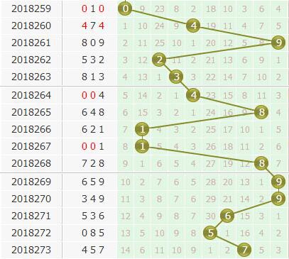 个位上期开出质数7号球,从个位的走势图上看,合数近期阶段性的连开表现一直不曾间断,非常擅长从2期内回补出号,并且持续连开的套路屡试不爽,本期建议看好合数开出;从振幅表现来看,近期小数牢牢被大数占据了先机,走势上倾向大数出号,本期建议胆码看好4689。