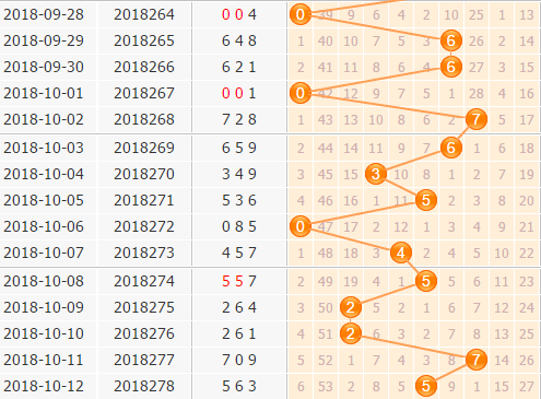 上期百位开出了5号球,从百位走势上来分析,百位虽然还是大号码的开出,但是近期大号码表现力度不强势,号码最多也就两期连开,更多的是小号码的表现,本期不看好大号码的再开。6号球现在开出不是很明显,不看好它;5号球刚刚开出,复开几率很小;9号球就是一个冷号,近期冷号还是可以缓一下,不建议看好。