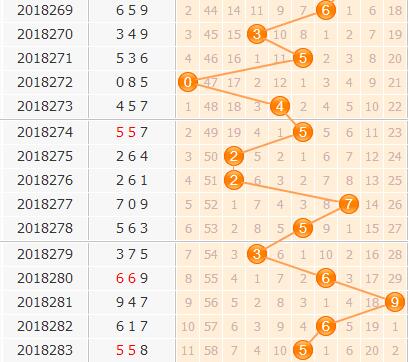 百位上期开出号码5,结合百位走势来看,5号球近期出号比较稳定,间隔期逐次增大,在这种情况下本期5号重复开出的可能性非常低了;2号经过之前的2期连开之后没有像6号球那样的回热能力,而是逐渐开始走冷了,预计在本期不会解冻出号;近期多次出现大数的会不号,除去热度高的5号,9号球没有太大的回暖能力,本期建议杀9号。