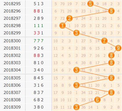 百位上期开出号码3,结合百位走势来看,近期号码在3号和8号之间胶着出号,其中有一期出现在中间位置的6号球上面,根据走势来看,振幅目前再度有拉大的趋势,因此中间区域的号码现在情况非常不利,其中4号遗漏期过大,出号难度很高,5号球位置自从2连开之后一直在走冷当中,和其他的冷码比确实不够看的,而6号球的出号积极性很低,隔期出号几率很低。