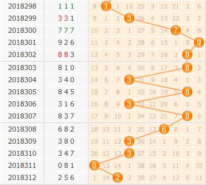 百位上期开出号码2,结合百位走势来看,近期走势明显朝着小数靠近,而且几次出号也集中在小数区域,大振幅的拉动似乎一去不回了,不过上期2点振幅的拉动也有一丝回拉的表现,小数上2号球久居冷码地位,重复出号几率不大,从振幅上出发,目前大振幅已经被遗忘了,建议杀掉9号,以及热度持续下降的8号球。