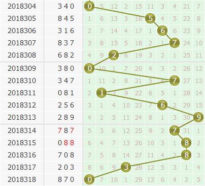 上期开奖号码为0,是一个小数,在个位的走势中分析,小数经历过5期的遇冷时期,在这期间受到大数的各种狂轰滥炸的袭击,在此之后大数耗尽了力量,目前没有余热号码出现,小数再度对大数发起了攻击,本期继续看好小数开出;近期小数区域内号码冷码开出居多,回补能力较差,建议看好胆码0124。