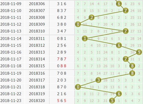 个位上期开出了号码5号,从个位走势上看,号码现在还是有停留大号码的趋势,近期小号码确实开出不强势,本期不建议关注小号码。0号球目前明显走暖,号码间隔一下子增大,本期也不看好0号球;4号球也是一个大冷号,出号可能性很小,不建议关注;6号球开出都是五六期的间隔,不看好隔期出号。