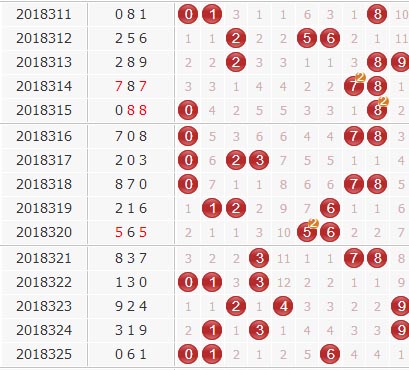 上期开出了号码061,是小大小、偶偶奇的组六形态。结合综合走势图来看,小数上目前的活跃号码中,连开号码还在持续进行中,上期奖号上0号继续看好,隔期号3号还有发挥的余地,6号球近期有连开表现,本期继续盯防,而在它两侧的5号和7号间隔期数差不多,本期可以盯防一下回补。