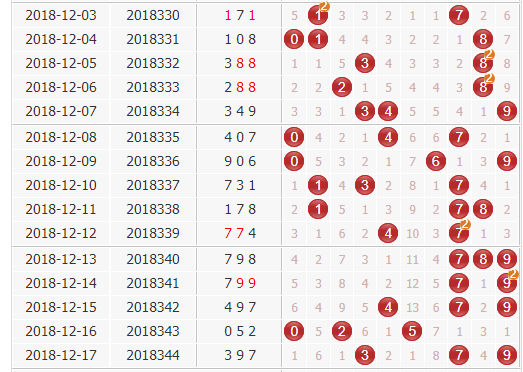 上期开奖号为397,小大大、奇奇奇,组六形态。结合综合走势图分析,1号近期逐渐冷却了下来,转温号表现,本期看淡1号;目前斜连号开出少了,而邻码倒是活跃气来,本期不看好4号,6号球受到7号多次提携始终无法解冻出号,8号位置不同于它两边的号码热度这儿么大,它反而敬而远之起来。