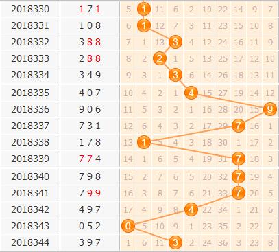 百位上期开出号码3,结合百位走势来看,1号近期出号的节奏缓和,从出号间隔看慢慢走冷状态明显,从振幅来看,目前主要由小振幅开出,同时小数号码持续走热,总体上号码停留在小数区域居多,因此大振幅下8号长期遗漏不适宜出号,9号出号间隔期长,本期建议可杀。