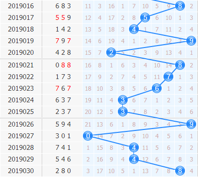 十位上期开出了8号球,从十位走势来看,近期号码执着的向右侧区域拉动出号,小数的连开也没能阻止住它的移动,目前大数上的话8号邻码比较慎重,9号顺着走势建议保留,但是另一边的7号作为回拉号码的话振幅过小了,而振幅大的位置却又太大了,特别大的极限振幅出现的频率不高,本期建议杀掉0和大冷号1。
