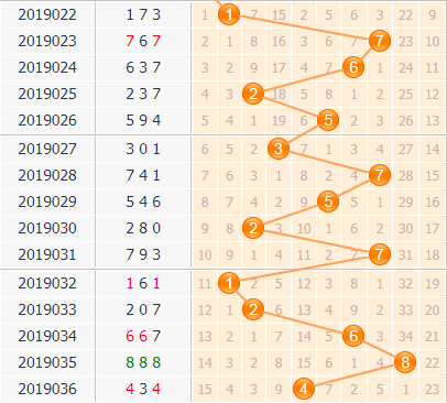 百位上期开出号码4号,结合百位走势来看,单纯从目前百位上的出号状态看,近30期都没有重复出号的表现,而且上期4号艰难的爆冷开出,本期继续开出可能性很小,7号目前遗漏期数已经超过了之前所有,出号力量是心有余而力不足了,而8号出号频率低,难得露面一次,走势又出现了新的反转,本期不看好隔期出号。