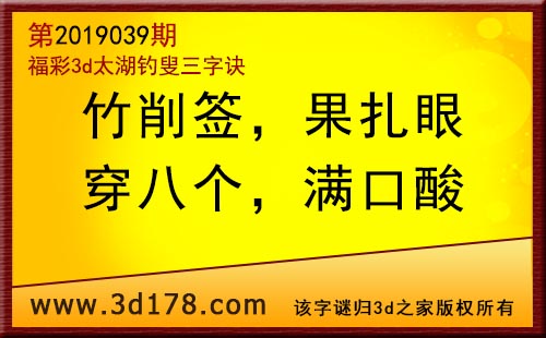 3d第19039期太湖字谜:竹削签,果扎眼,穿八个,满口酸