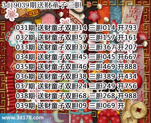 胆码图库3d第2019039期送财童子图: