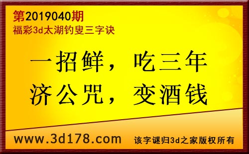 3d第19040期太湖字谜:一招鲜,吃三年,济公咒,变酒钱