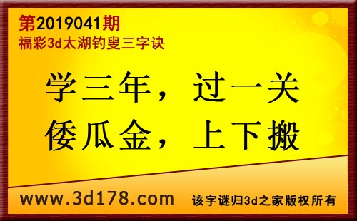 3d第19041期太湖字谜:学三年,过一关,倭瓜金,上下搬
