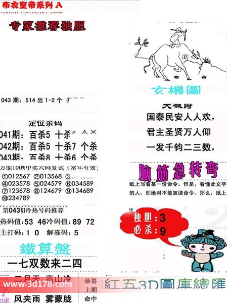 福彩3d第2019043期布衣皇帝A版布衣专家独家推荐: