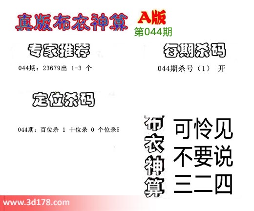 3d之家布衣图库之布衣神算图第2019044期详解: