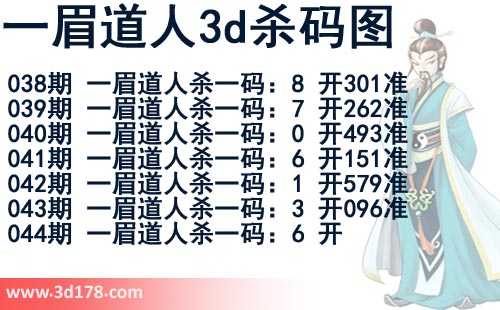 该一眉道人3d杀码图由3d之家3d图库频道原创,仅供彩民参考,温馨提供。