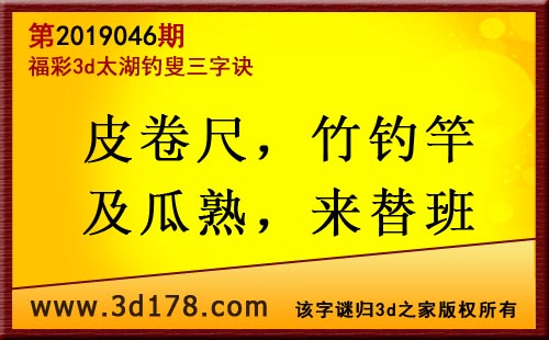 3d第19046期太湖字谜:皮卷尺,竹钓竿,及瓜熟,来替班