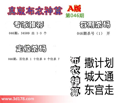 3d之家布衣图库之布衣神算图第2019046期详解: