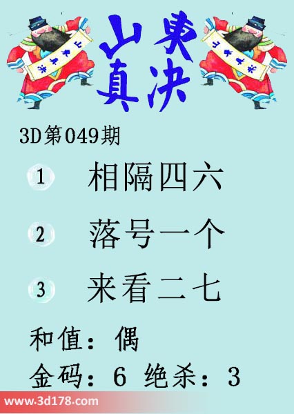 福彩3d第19049期山东真诀图如下所示: