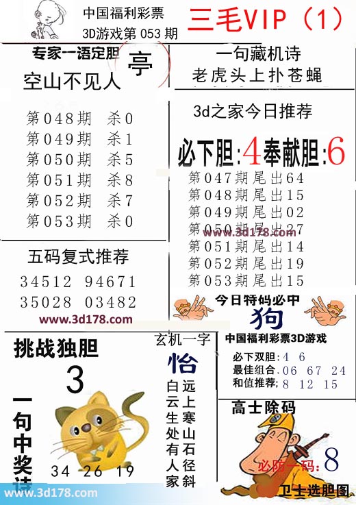 3d第2019053期三毛VIP详解: