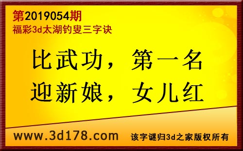 3d第19054期太湖字谜:比武功,第一名,迎新娘,女儿红