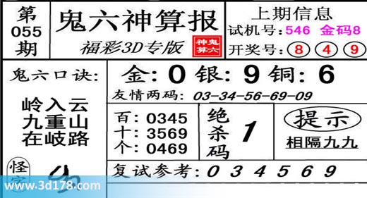 3d第19055期鬼六神算报为您推荐鬼六口诀: