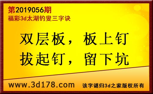 3d第19056期太湖字谜:双层板 板上钉 拔起钉 留下坑
