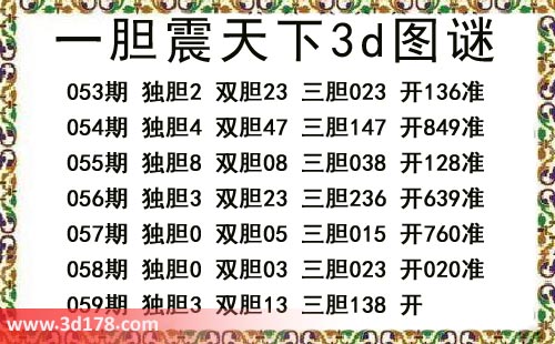 本期一胆震天下3d图谜: