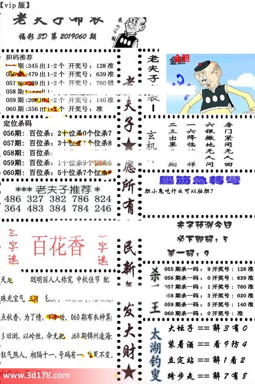 福彩3d第2019060期老夫子布衣图详情: