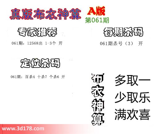 3d之家布衣图库之布衣神算图第2019061期详解: