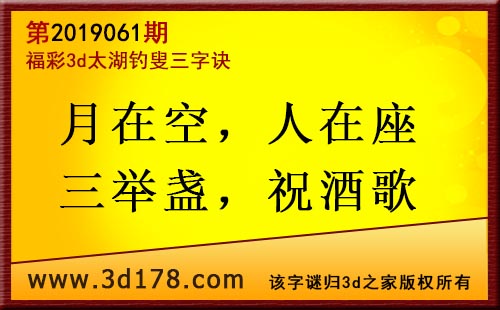 3d第19061期太湖字谜:月在空,人在座,三举盏,祝酒歌