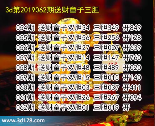 062期 送财童子双胆01 三胆019 开
