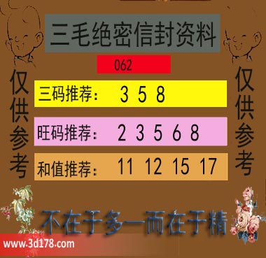 福彩3d第19062期三毛绝密信封资料图详解: