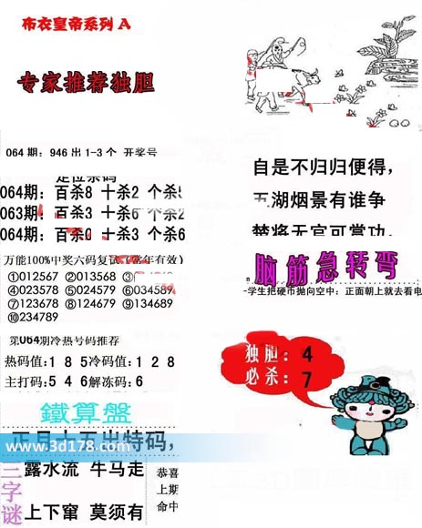 福彩3d第2019064期布衣皇帝A版布衣专家独家推荐: