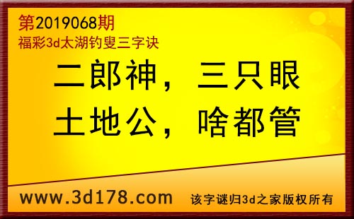 3d第19068期太湖字谜:二郎神,三只眼,土地公,啥都管