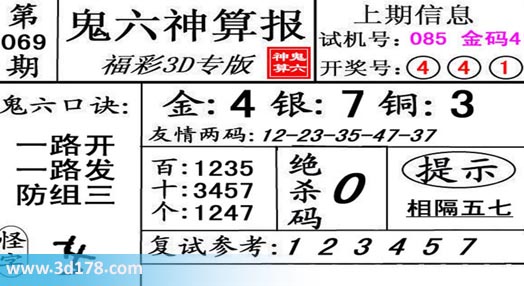 3d第19069期鬼六神算报为您推荐鬼六口诀:
