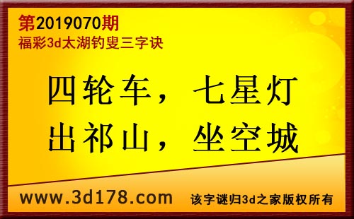 3d第19070期太湖字谜:四轮车,七星灯,出祁山,坐空城